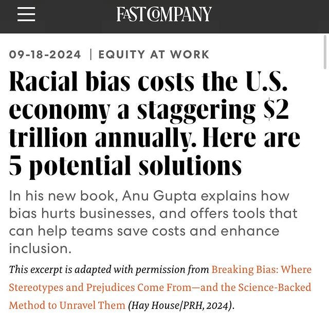 Fast Company also published an excerpt from my book, where I talk about the financial and human costs of bias—and how the tools from Breaking Bias can help! You can read the full article here.